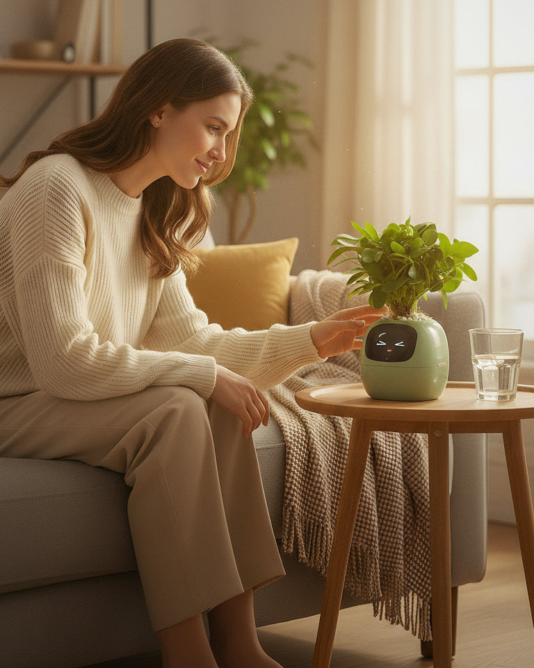 Découvrez une nouvelle façon d’interagir avec votre intérieur. Votre plante intelligente exprime ses besoins et son humeur, vous guidant avec subtilité. Offrez-vous une présence vivante qui enrichit votre quotidien.